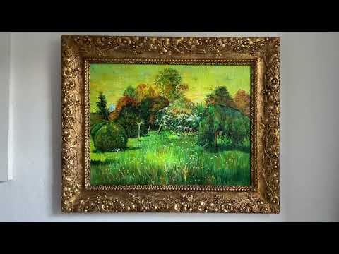 De lijst, een perfecte match met onze handgeschilderde replica, vertoont tekenen van veroudering met enkele kieren en kleine ontbrekende stukjes. Het heeft echter precies de ziel waar Van Gogh zo dol op was. Het versterkt niet alleen de citroenkleuren (en de blauwe toren van Arles op de achtergrond), maar de vegatale decoratie op de lijst weerspiegelt ook de geest van de tuin.